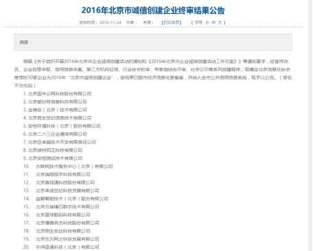 2016北京诚信创建企业名单(部分)详情请见:http://www.bjit.org.cn/Html/NewsView.php?ID=799